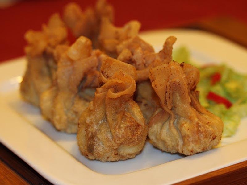 Bolsita won-ton de butifarra y manzana con reducción de Módena