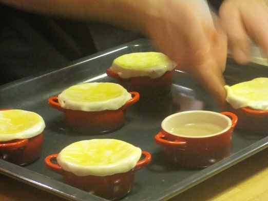 Disponer dentro de los ramequines o cocottes.